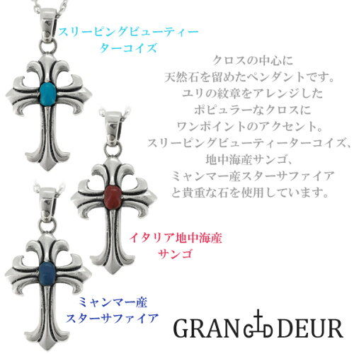 GRAN DEUR リリィ クロス ターコイズ コーラル スターサファイア シルバー ペンダントトップ チェーンなし シルバー925 メンズ ネックレス 十字 天然石 スリーピングビューティ サンゴ ミャンマー ブランド プレゼント 人気 おしゃれ