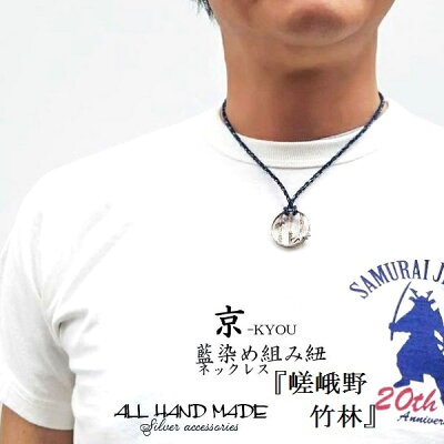 商品名 《京》組み紐ネックレス『嵯峨野竹林』 京銀細工 ALL HAND MADE 価格 6,500(+tax) 素材 トップ、留め具:シルバー925 組み紐:藍染ロープx銀糸 綿100% コメント 一つ一つ、職人の手作りによる 古都 京の風情伝える銀細工アクセサリーです。