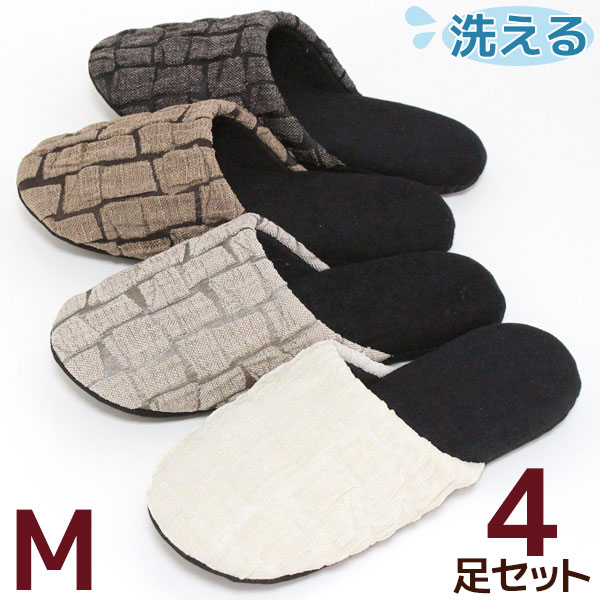 ナチュラルスリッパ、消音スリッパ、業務用品 【コンビニ受取対応商品】イタリア製のふくれ織り生地を使用した繊細で上品なおしゃれスリッパ色が選べる来客用4足セット ☆